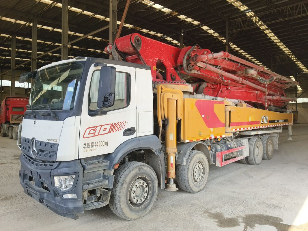 Specifications: SYM5442THBEB 620C-10A model with 62m boom, 110,000+ m³ output, 2020 Mercedes chassis, meets China Stage V emission standard, 44,000 km mileage.